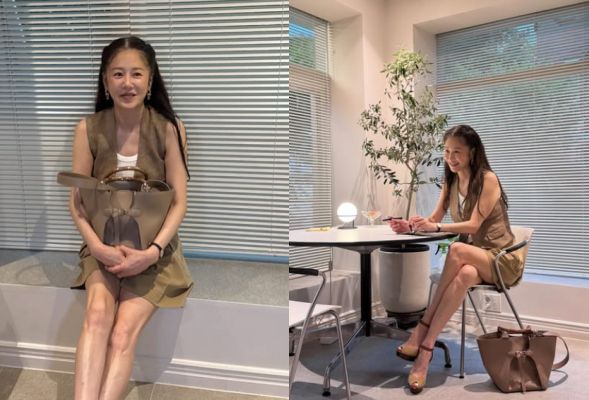 공개된 사진 속 고현정은 브라운 컬러로 맞춘 옷과 가방을 착용하고 잠시 휴식을 취하는 모습이다.