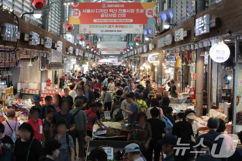 지난해 9월 추석 연휴를 하루 앞두고 서울 동대문구 청량리종합시장이 제수용품 구매 등 장을 보는 시민들로 붐비고 있다. 2024.9.13/뉴스1 ⓒ News1 박세연 기자 |