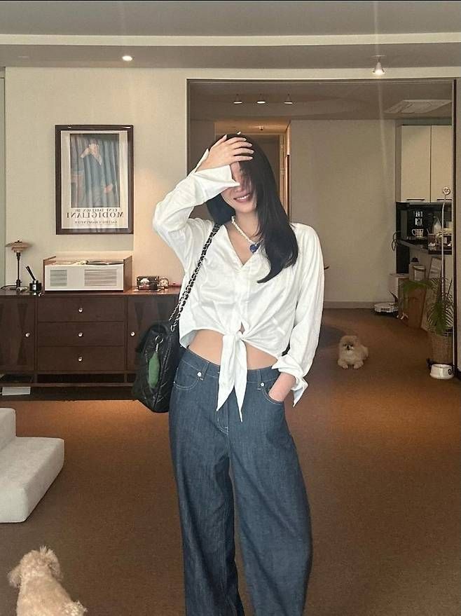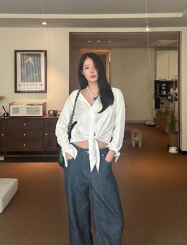 이날 임수향은 복근 라인이 은은하게 드러나는 크롭 화이트 셔츠에 데님 와이드 팬츠를 매치해 꾸안꾸 패션의 정석을 보여줬다. 여기에 클래식한 샤넬 퀼팅 플랩백을 살짝 걸쳐준 스타일링은 절제된 고급스러움을 배가시켰다.
