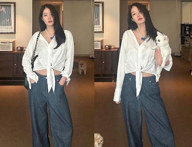 긴 생머리 사이로 무심히 떨어지는 눈빛, 그리고 반려견과 함께한 자연스러운 일상 속 한 컷까지도 화보처럼 완성됐다.