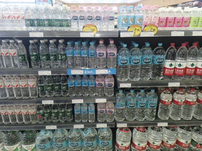 중국 연변 연길의 한 마트에서 판매중인 농심 백산수. 올해 누적 매출 1조원을 돌파한 백산수는 중국 전역의 주요 대형마트에 입점해 있다. 현재 백산수는 전체 매출의 약 25%가 중국에서 발생한다. 현지 백산수 매출 도약을 위해 농심은 2022년부터 중국 전용 5L 제품을 운영하는 등 특수 판매를 추진하는 중이다. /사진=조효정기자 |