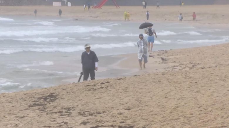 궂은 날씨라는 걸 알면서도 해수욕장을 찾은 관광객들.