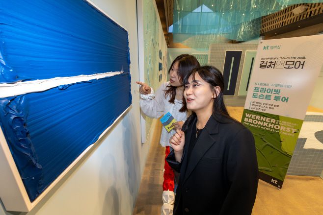KT는 지난 19일 서울 종로구 그라운드시소 서촌에서 열린 '워너 브롱크호스트: 온 세상이 캔버스' 전시에서 두 번째 투어를 진행했다. 이번 전시는 SNS 팔로워 140만명을 보유한 글로벌 작가의 아시아 첫 개인전으로 주목받았으며, 140대 1의 높은 경쟁률을 기록했다. 최종 선정된 고객 60여명은 전시장을 단독으로 관람했다.