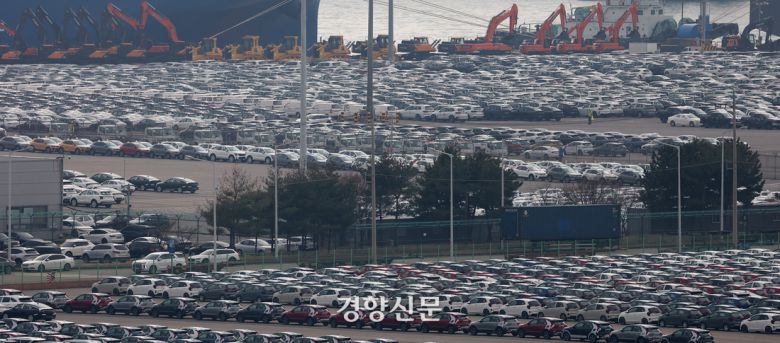 미국의 상호관세가 발효된 지난 4월9일 경기 평택항에 수출용 자동차들이 주차되어 있다. 권도현 기자 |