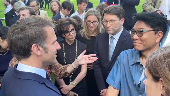 이수만 A2O엔터테인먼트 키 프로듀서 겸 비저너리 리더가 에마뉘엘 마크롱 프랑스 대통령과 환담을 가졌다.