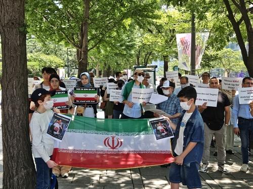 재한이란인 60여명은 이날 SK서린빌딩 앞에서 집회를 열고 'Stop the war(전쟁을 멈춰라)', 'Speak up for Iran(이란을 위해 목소리를 내자)' 등의 구호를 외쳤다. 이란 국기를 손에 들거나 몸에 두른 사람들도 눈에 띄었다.