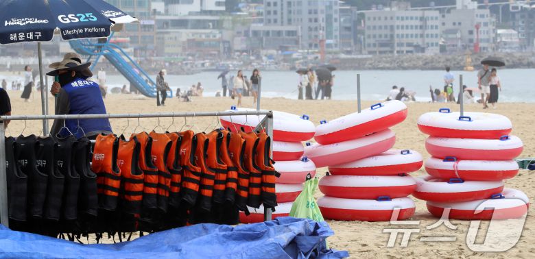 (부산=뉴스1) 윤일지 기자 = 부산 해운대해수욕장이 개장한 후 첫 주말을 맞은 22일 해운대해수욕장에 튜브와 구명조끼가 정리돼 있다. 부산 7개 해수욕장 중 해운대·송정해수욕장은 지난 21일 개장했으며, 광안리·송도·다대포·일광·임랑해수욕장 등 5개 해수욕장은 내달 1일부터 피서객을 맞는다. 2025.6.22/뉴스1