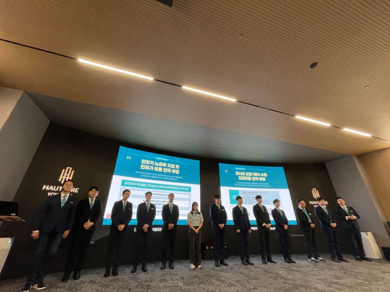 현산은 조합 수익 극대화와 프리미엄 단지 실현을 핵심으로 제안했다. 공사비는 평당 929만원으로, 조합원당 최대 20억원의 이주비를 보장하며 LTV 150% 기준에 CD+0.1% 고정금리를 적용했다. 기성불 방식으로 분양 전에도 공사비가 지급되며, 연체료 없이 진행 가능하다는 점을 강조했다.