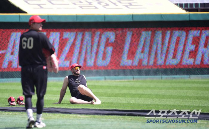 22일 인천 SSG랜더스필드에서 열리는 SSG와 KIA의 경기. 그라운드에 맨발로 몸을 풀고 있는 KIA 위즈덤. 인천=송정헌 기자songs@sportschosun.com/2025.06.22/