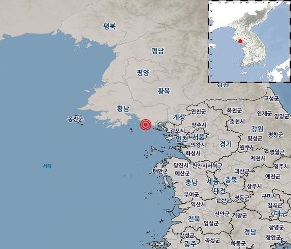 (서울/국제뉴스) 민소미 기자 = 기상청은 "6월 22일 13시 28분 14초경 북한 황해남도 해주 남동쪽 38km 해역에서 2.0(± 0.2) 규모의 지진이 발생했다"고 밝혔다,