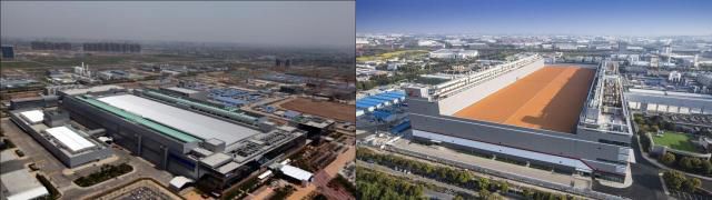 삼성전자 중국 시안 낸드 공장(좌), SK하이닉스 중국 우시 D램 공장 전경 [사진=각 사] |