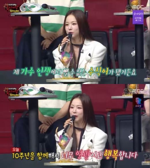 이어 솔지는 "아이돌이라는 편견을 깨고 많은 분들이 내게 애정을 보내준 계기가 된 프로그램이다. 10주년을 함께 해서 너무 영광이고 행복하다"며 '복면가왕'을 향한 고마운 마음을 전했다.