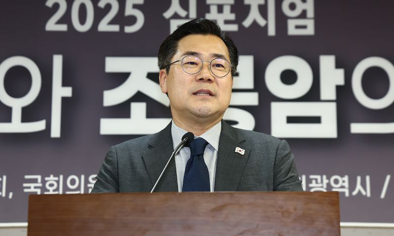 더불어민주당 박찬대 전 원내대표가 지난 20일 서울 여의도 국회에서 열린 ‘2025 심포지엄: 전시국회와 조봉암의 리더십’에서 인사말을 하고 있다. 뉴스1 |