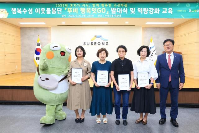 김대권 수성구청장은 “이웃 돌봄 단 단원 한 분 한 분의 작은 관심이 주민의 삶에 큰 변화를 만든다”며 “지역 주민이 직접 참여하는 돌봄 시스템이 고독사 없는 행복한 수성을 만드는 밑거름이 될 것”이라고 말했다.