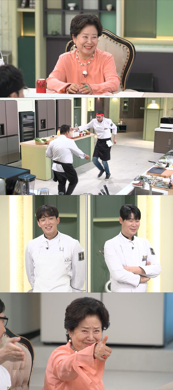 이들의 치열한 자존심 싸움은 댄스 배틀로까지 번진다. 파브리가 요리 설명 중 흥 넘치는 댄스를 선보이며 "춤추는 셰프의 새 시대를 열겠다"고 선언하자, 정호영은 원조 댄스요정다운 몸짓으로 응수해 분위기를 달군다. 하지만 두 셰프의 어설픈 움직임을 본 선우용여는 "관세음보살..."이라고 읊조려 현장은 웃음바다로 만든다고. 선우용여의 유쾌한 입담과 셰프들의 뜨거운 대결은 방송을 통해 확인할 수 있다.