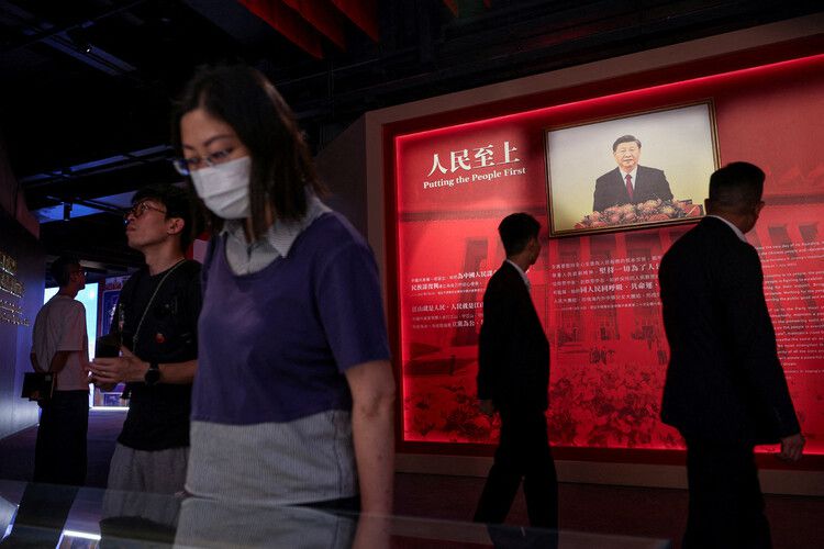 홍콩 국가보안법 시행 5주년을 앞둔 지난 20일 홍콩에서 열린 국가안보 관련 전시에 시진핑 중국 국가주석의 사진이 걸려있다. 홍콩/로이터 연합뉴스 |