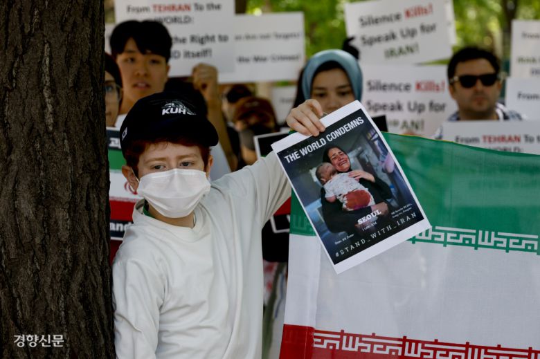 재한 이란인 50여명은 이날 서울 종로구 주한 이스라엘 대사관 인근에 모여 집회를 열었다. 이들은 성명에서 “핵시설을 표적으로 삼고, 여성과 어린이를 포함한 민간인의 생명을 앗아가는 것은 명백한 국제법 위반”이라며 “유엔과 모든 평화를 사랑하는 국가들이 이스라엘에 전쟁범죄를 책임지도록 하고, 더 이상의 무력 충돌을 막는 것을 도와달라”고 했다.