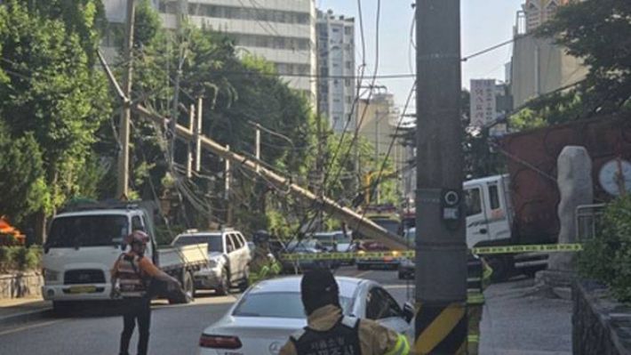 서울 구로구 구로동에서 재활용품 수집 차량이 전봇대를 쓰러뜨리면서 일부 세대가 정전됐다.