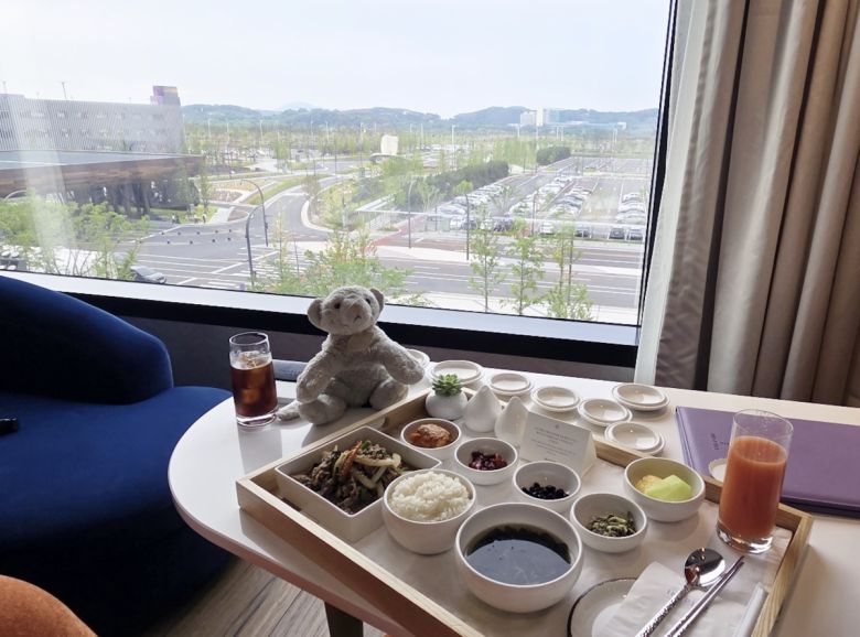 평소대로라면 일찍 일어나 부지런히 움직였을테지만 이날 만큼은 메뉴 고민만 하면 돼 '부지런해야 한다'는 압박감이 평소보다 덜했다. 호텔 조식을 먹을 때 남들보다 더 좋은 자리를 선점해야 한다거나 줄을 서서 핫플레이트 메뉴를 받아야 한다는 부담도 없다. 보는 눈이 없으니 서둘러 씻거나 어느 복장이라도 괜찮고 느긋하게 쉬엄쉬엄 먹어도 그 자체로 '휴식'이었다. 기자가 배정받은 객실은 포레스트뷰였는데 만약 리버뷰 숙박객이라면 보다 운치있게 객실 내 식사를 즐길 수 있을 것으로 보였다.