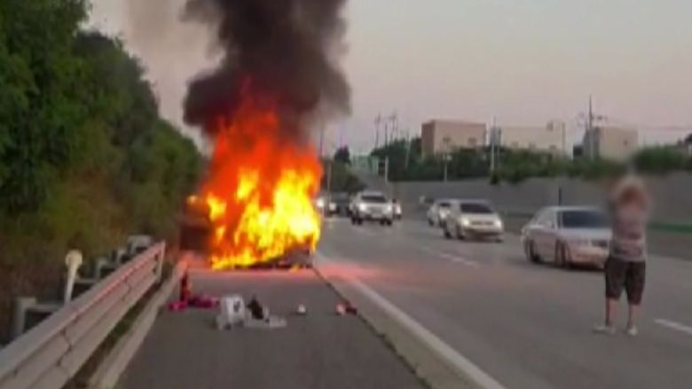 운전자가 차를 갓길에 세우고 대피해 다친 사람은 없었지만, 차는 모두 불에 탔습니다.