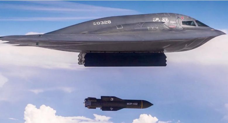 B-2 폭격기(위쪽), 벙커버스터 폭탄. |