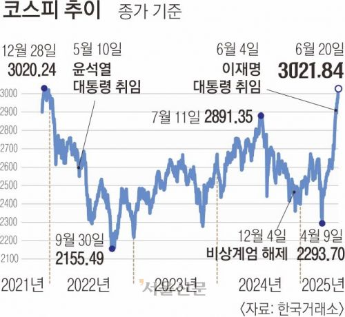 코스피가 이재명 정부 출범 이후 불과 보름여 만에 3000포인트를 돌파하면서 이번 상승 랠리가 구조적 상승 전환으로 이어질지 관심이 집중되고 있다. 전문가들은 지수가 다시 밀리지 않기 위한 과제로 ▲수출 확대 ▲관세 개선 ▲좀비기업 퇴출 ▲기업이익 회복 등을 제시했다.