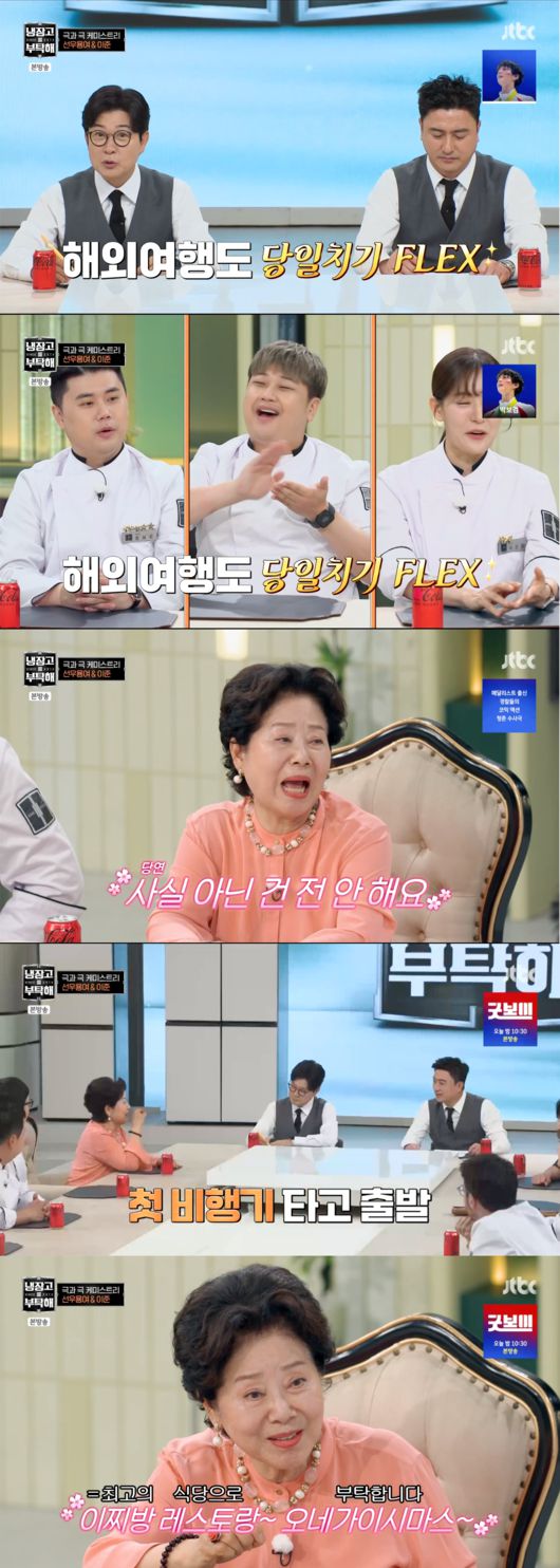 [OSEN=박근희 기자] '냉장고를 부탁해' 선우용여가 조식 뷔페에 이어 당일치기 해외여행을 언급했다.