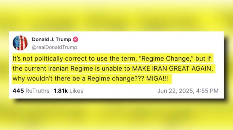 트럼프 대통령은 현지시간 22일 SNS에 "'정권 교체'라는 용어를 사용하는 게 정치적으로 올바르지 않지만, 만약 현 이란 정권이 이란을 다시 위대하게 만들지 못한다면 왜 정권 교체가 없겠느냐"라고 적었습니다.