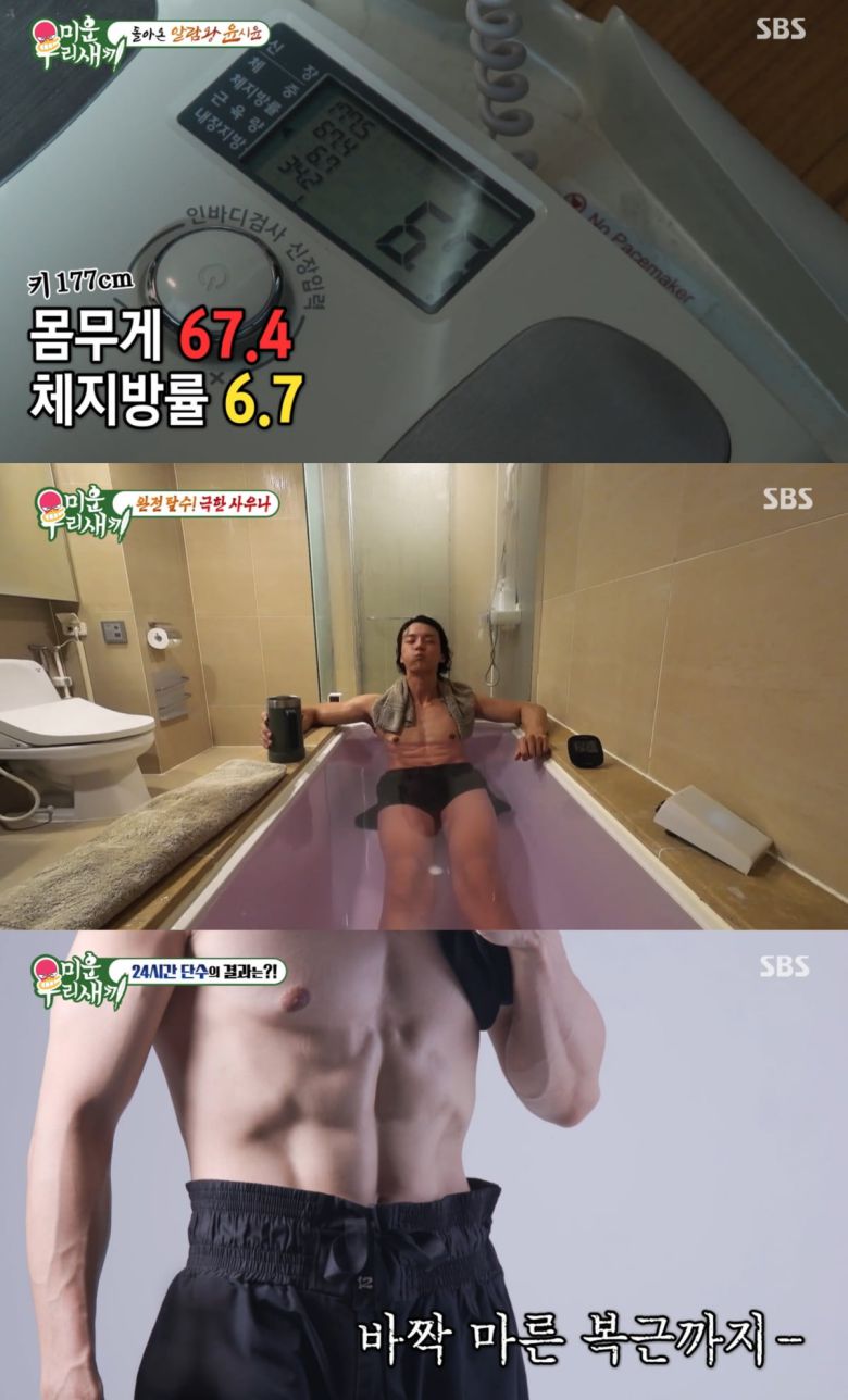 이날 윤시윤은 일어나자마자 몸무게를 쟀다. 키 177cm에 몸무게는 67.4kg, 체지방률은 6.7%였다. 윤시윤은 ‘모범택시3’로 복귀를 앞두고 캐릭터를 위해 혹독한 다이어트를 하고 있다고 밝힌 바 있다.