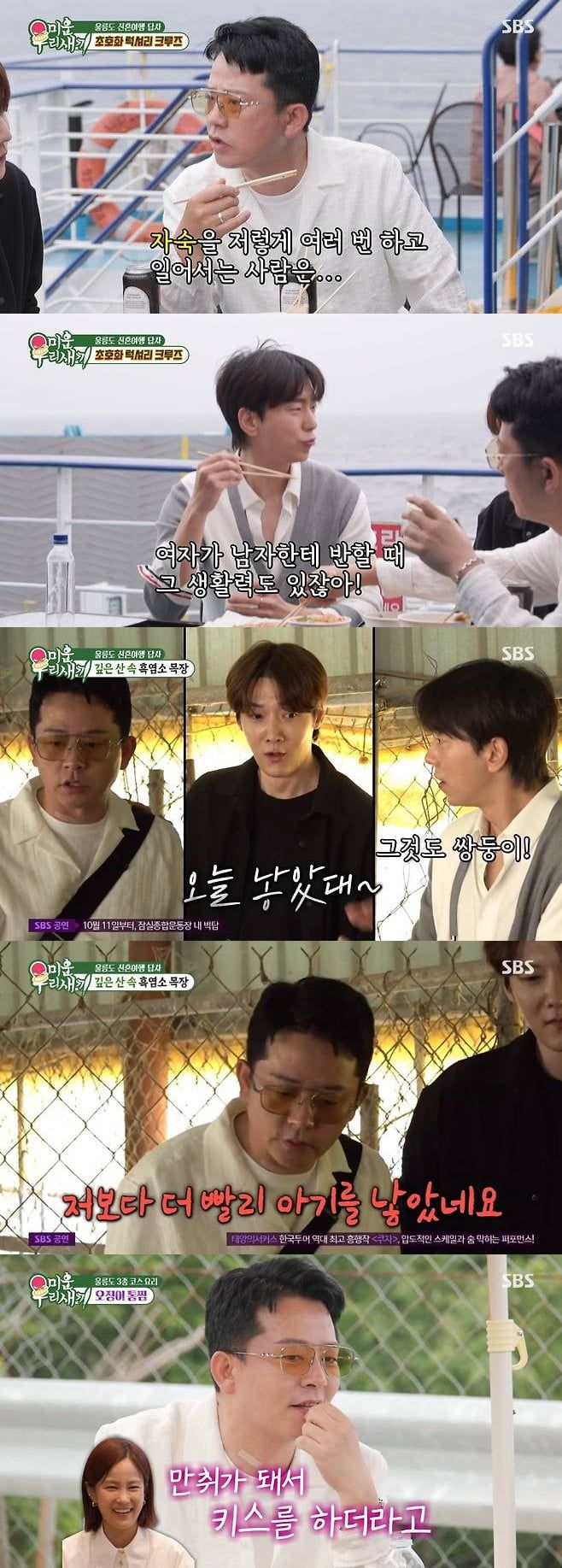 이후 세 사람은 산속 흑염소 목장에 갔다. 흑염소 쌍둥이 탄생에 김준호는 "나도 빨리 낳아야 한다. 쌍둥이 기운 받고 간다"며 2세 계획을 언급했다.