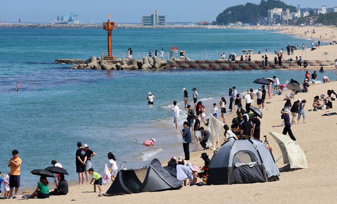 30도를 넘는 무더위가 이어진 22일 강원 강릉시 강문해변에 많은 피서객이 몰려 무더위를 식히고 있다. 강릉지역은 28일 경포를 시작으로 해수욕장이 개장, 본격적인 피서객 맞이에 나선다. 연합뉴스 |
