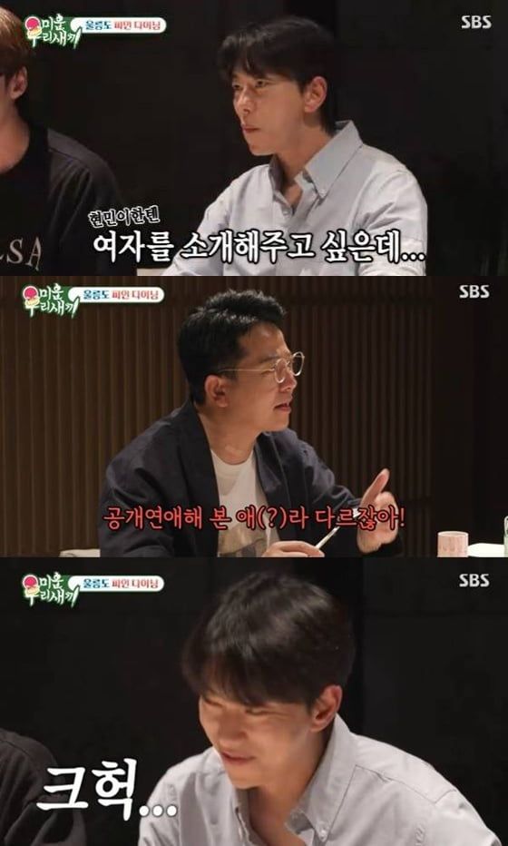 윤현민이 “약간 불편한 게 있어야 한다. 어색하고 뻘쭘해서 말실수도 나오는 어리숙함”이라고 하자 김준호는 “공개 연애 해 본 애라 다르다”고 백진희를 간접 언급했다.