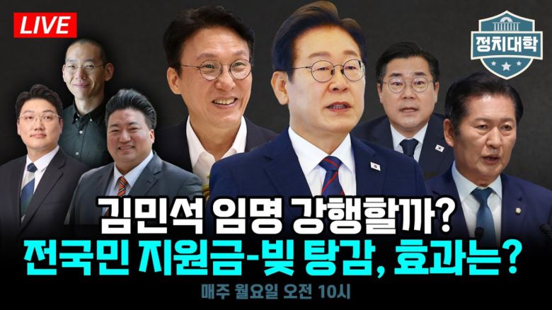오늘(23일) 방송되는 '정치대학'에서는 김 후보자 논란의 핵심 쟁점과 청문회 전망을 집중 분석합니다. 아울러 슈퍼 추경의 기대 효과와 부장용을 짚어보고, 이재명 대통령의 나토 정상회의 불참 배경과 외교적 파장도 들여다봅니다.