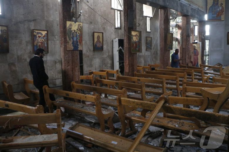 (서울=뉴스1) 김예슬 기자 = 시리아 수도 다마스쿠스의 한 교회에서 자살 폭탄 테러로 20여명이 숨졌다.