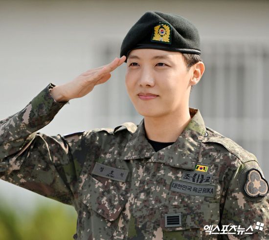 제이홉이 속한 방탄소년단은 지난 21일 슈가가 소집해제를 하면서 모든 멤버가 군 복무를 마쳤다.