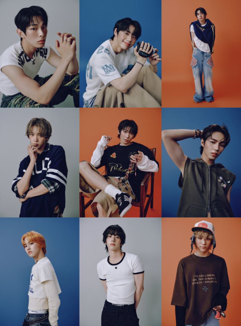 마지막 콘셉트 포토는 그레이, 네이비, 오렌지 등의 포인트 컬러를 선정해 멤버 개개인의 캐릭터성을 극대화한다. 여기에 아홉(AHOF)의 포토제닉한 포즈와 다양한 앵글이 더해져 마치 하나의 화보를 연상케 한다.