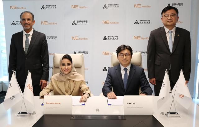 계약은 최근 넥스트에라의 디나 아부누크 최고경영자(CEO)의 방한 일정에 맞춰 체결됐다. 과천 메가존산학연센터에서 열린 체결식에는 디나 아부누크 CEO를 비롯해 메가존클라우드 이주완 의장, 아람코 디지털 CEO이자 넥스트에라 이사회 의장인 나빌 알-누아임, 한국인공지능소프트웨어산업협회(KOSA) 조준희 회장 등이 참석했다.