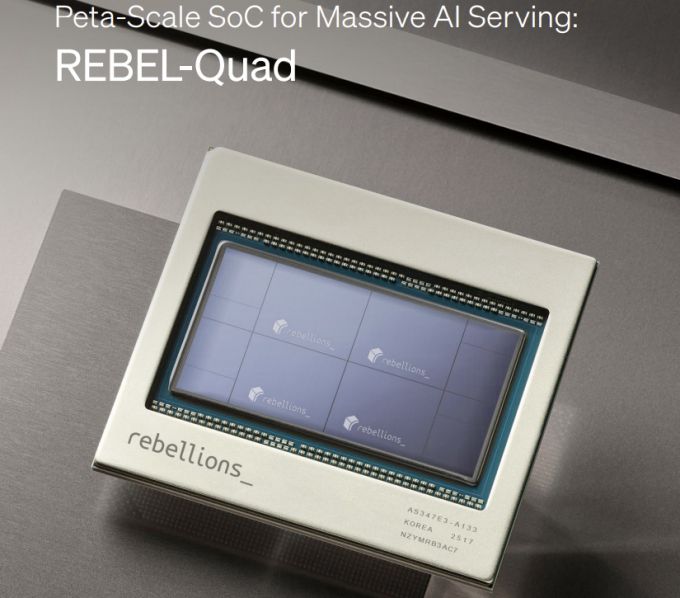 23일 관련업계에 따르면 리벨리온은 삼성전자 파운드리에서 신형 3세대 NPU '리벨-쿼드'의 샘플칩을 생산했다. 해당 칩은 엔비디아의 하이엔드급 GPU(그래픽처리장치)인 H100·B100 등을 겨냥하는 제품이다. 4개의 코어를 'UCIe' 규약으로 연결한 칩렛구조로, 1초당 연산량 2048테라플롭스(TFLOPS), 350~700w의 전력량 등의 스펙을 갖췄다. 생산은 삼성전자 4나노 공정에서 이뤄졌다.