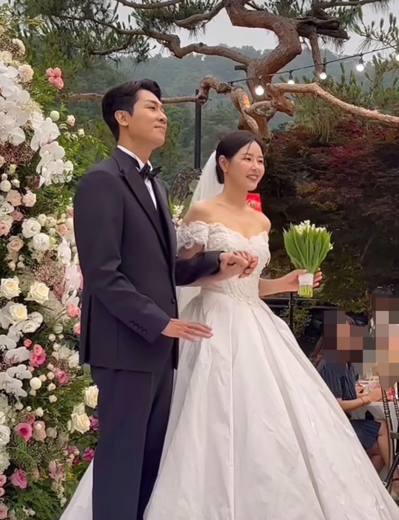 결혼식 사회는 스포츠 캐스터 정용검, 축가는 노을이 맡았다.