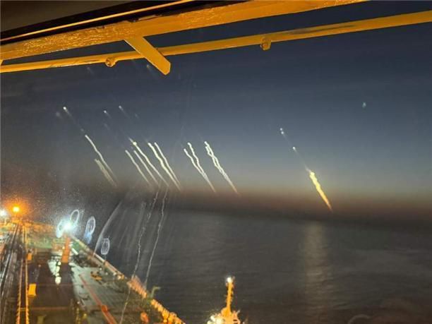 Fired missiles seen on a ship sailing through the Strait of Hormuz, June 19, 2025. Courtesy of the Federation of Korean Seafarers' Unions