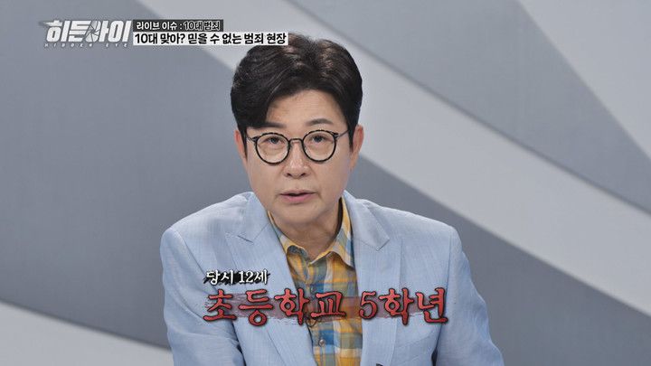 범죄 분석 코멘터리 쇼 '히든아이'에서는 실탄이 발사된 난폭 운전 도주극과 초등학생이 가담한 조건만남 폭행 사건 등 충격적인 사건들을 담은 프로파일러 권일용의 포토카드가 공개된다. 현장을 담은 사진 세 컷에서는 난폭 운전자를 향한 경찰의 실탄 발사까지 이뤄진 차량이 포착됐다. 난폭 운전자가 경찰차를 향해 돌진하는 등 도주 시도 과정에서 경찰차의 범퍼가 뜯겨나가 너덜거리는 모습을 본 가수 소유는 "거의 범퍼카 수준인데요?"라며 반응했다. 이번 방송에서 출연진들을 당황하게 한 남성의 황당한 도주 이유가 무엇인지 밝혀진다.