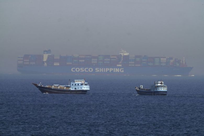 2023년 5월 호르무즈 해협에서 항해 중인 대형 컨테이너선과 선박. 사진은 기사 본문과 관계 없음.사진=뉴시스