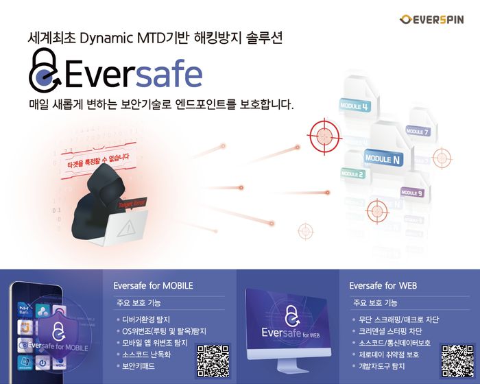 에버스핀은 동적표적방어(MTD·Moving Target Defense) 기반 애플리케이션(앱)·웹 통합 보안 솔루션 '에버세이프'를 출품했다.