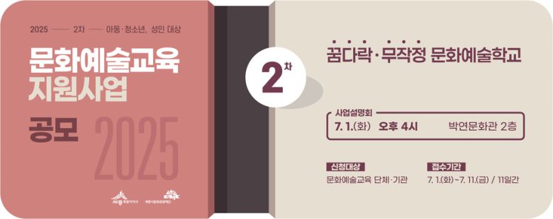 2025년 생애주기별 문화예술교육 지원사업 2차 공모 웹배너.