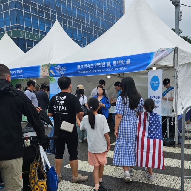 현장에서는 평택시가 생산한 병입 수돗물 'PT-water'를 무더운 날씨 속 방문객들에게 무료로 제공하며, 평택 수돗물의 청결함과 안전성을 홍보했다.