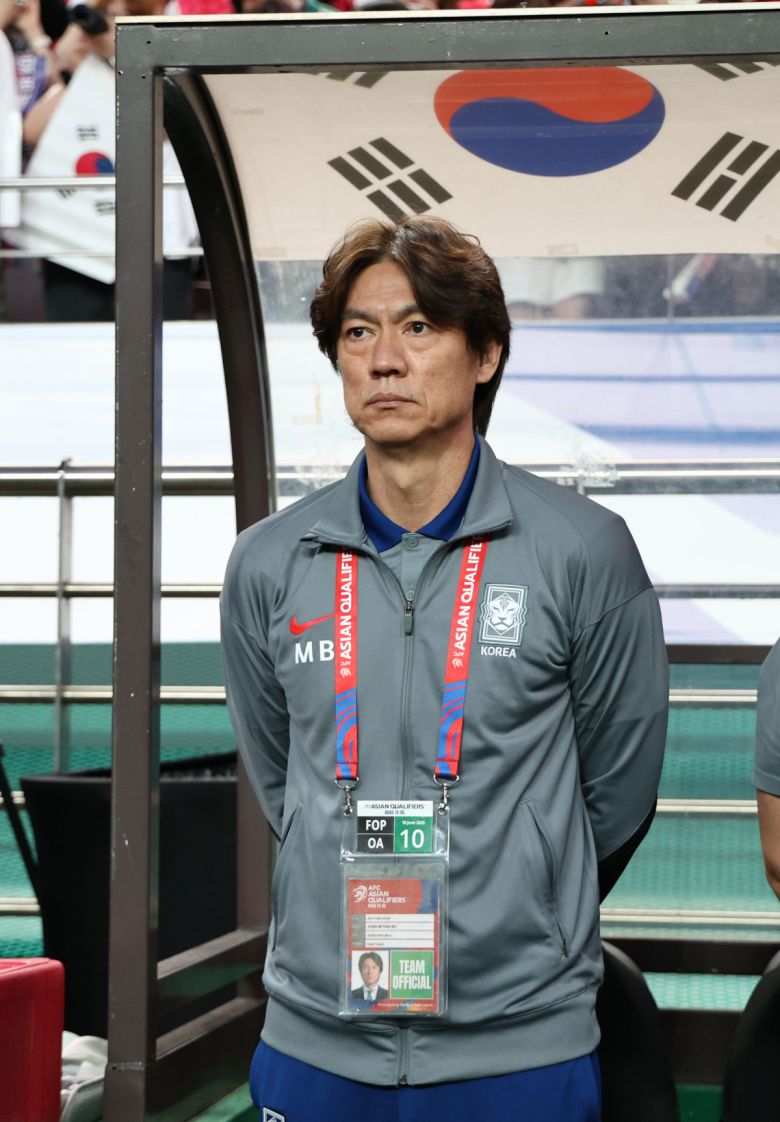 10일 서울월드컵경기장에서 열린 2026 북중미 월드컵 아시아 3차 예선 최종전 한국과 쿠웨이트의 경기에서 홍명보 감독이 경기 시작을 기다리고 있다. |