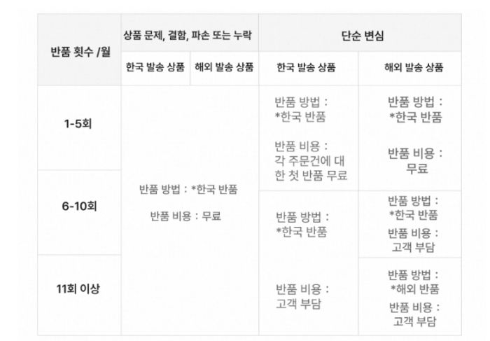 정책 변화는 지난해 11월부터 단계적으로 시작됐다. 당시까지 유지되던 '무조건 무료 반품' 정책에서 탈피해, 일정 횟수 초과 시 유상 전환하는 방향으로 바뀌었다. 이후 2025년 4월부터는 '셀프반송' 시스템이 도입되며, 해외 발송 상품에 대한 반품 절차가 완전히 달라졌다.