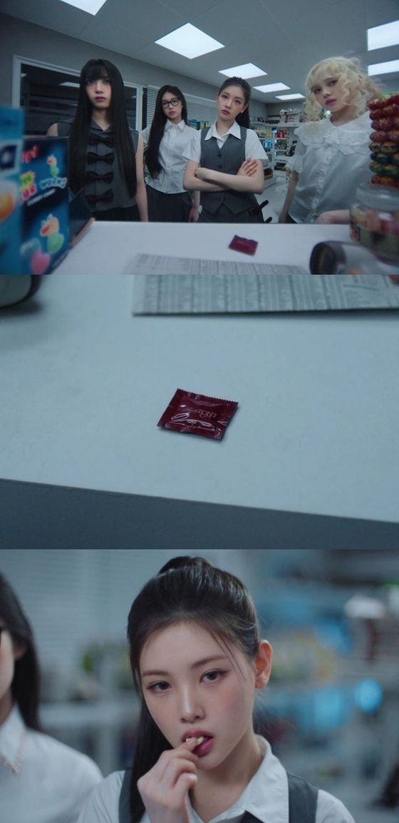 영상은 상점에 들어선 멤버 이현이 카운터에 ‘Baby DONT Cry’라는 문구가 적힌 사탕을 건넨다. 해당 사탕의 포장지가 남성용 피임기구를 연상시키는 모양이다. 이현은 사탕의 포장을 뜯어 입에 넣는다. 또 생리대를 연상시키는 모양의 노란색 러그, 빨간색 체리 음료를 러그에 쏟는 장면 등이 이어졌다.
