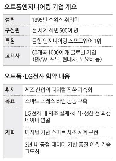 오토폼에 따르면 LG전자는 가전 등 생산 현장에서 실제로 발생하는 스탬핑 공정 데이터를 실시간으로 수집하고 분석하는 지능형 프레스 판금 라인(i-Press) 시스템을 운영하고 있으며, 이를 통해 소재 특성과 공정 조건을 실시간으로 반영한 품질 제어 기능을 고도화하고 있다. 이와 맞물려 오토폼은 최근 인공지능(AI) 기반 머신러닝 기술을 적용한 '스마트 프로덕션 어시스턴트(SPA)' 솔루션을 통해 설계와 해석, 품질 예측, 공정 제어의 전 과정을 자동화하고 최적화하는 기술을 선보이고 있다.