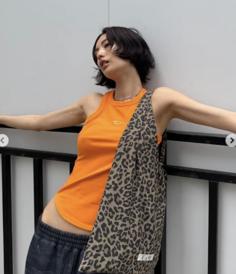 사진 속 나나는 몸에 밀착되는 주황색 민소매 크롭톱에 와이드 데님 팬츠, 레오파드 패턴 숄더백을 매치한 스트릿룩을 연출했다. 브라를 착용하지 않은 듯한 자연스러운 실루엣과 자유로운 포즈가 돋보였다. 머리를 헝클어뜨리거나 난간에 기대고, 양팔을 활짝 벌리는 등 과감한 분위기도 더했다.